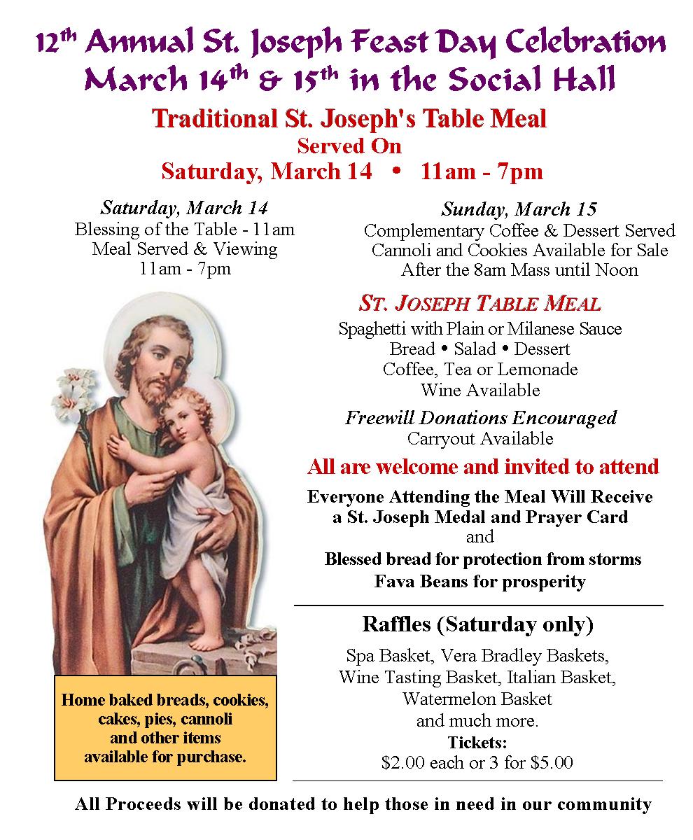 The.12th annual St. Joseph Table celebration at St. James is being held on Saturday, March 14 and Sunday, March 15 in the Social Hall.